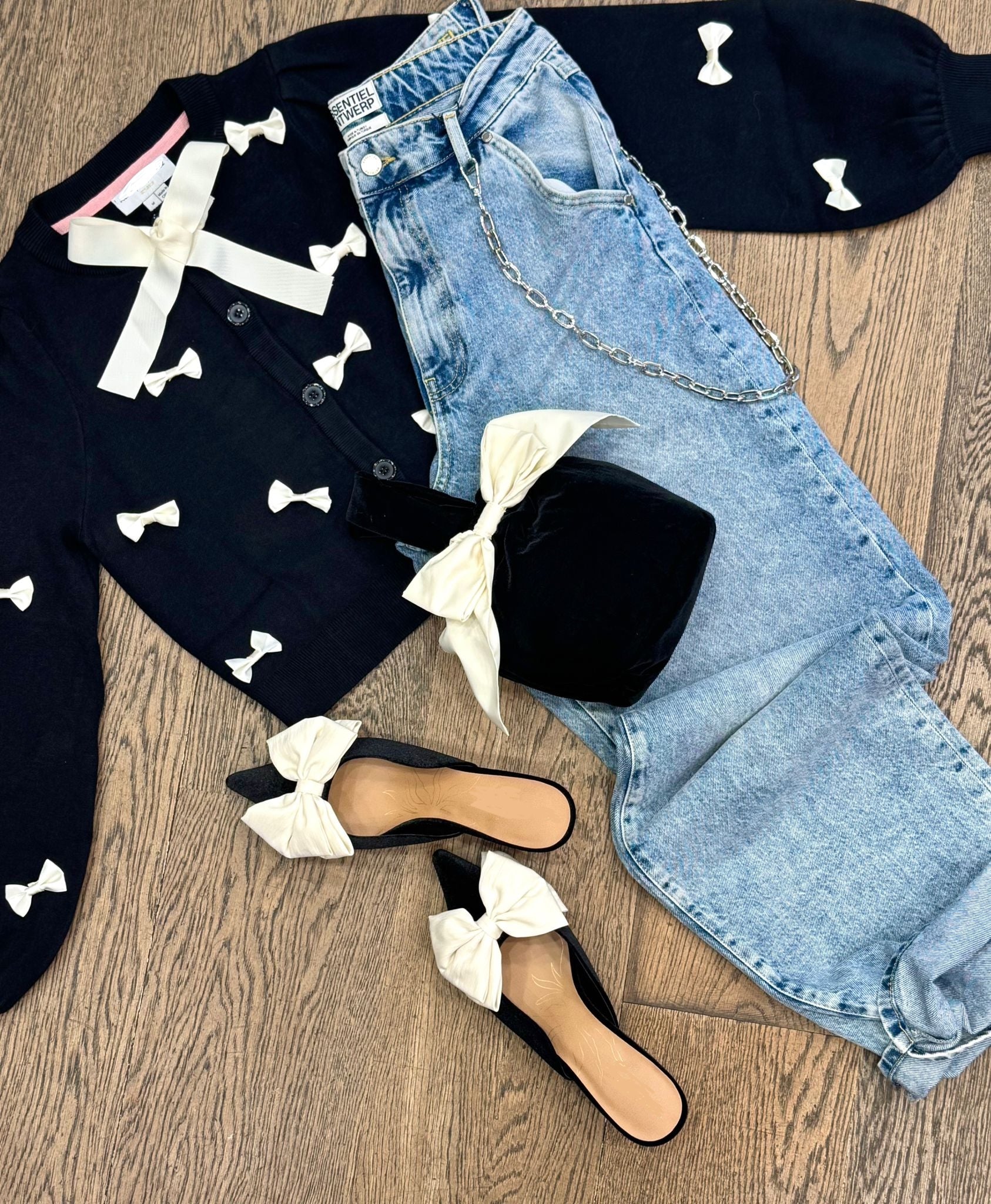 Perfetto per essere abbinato con la nostra borsa in velluto con fiocco e mule in velluto con fiocco.