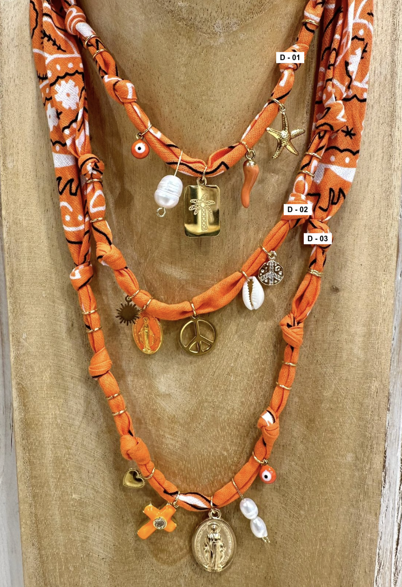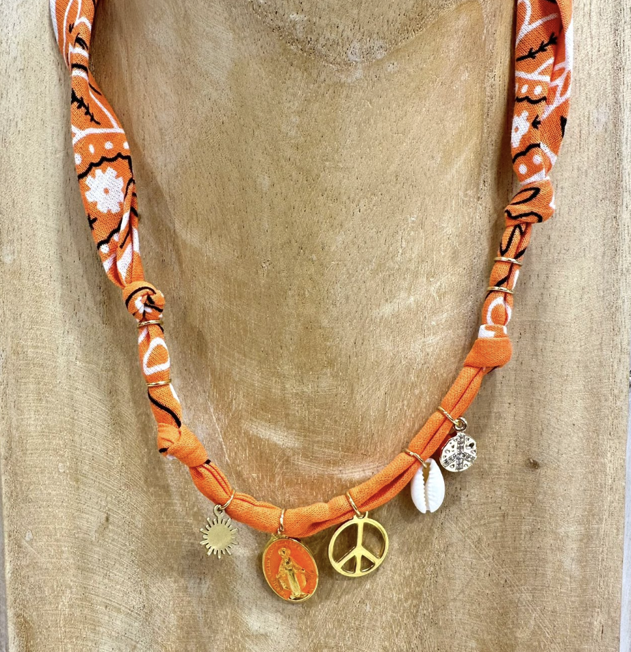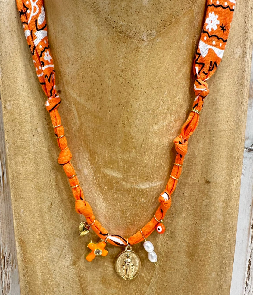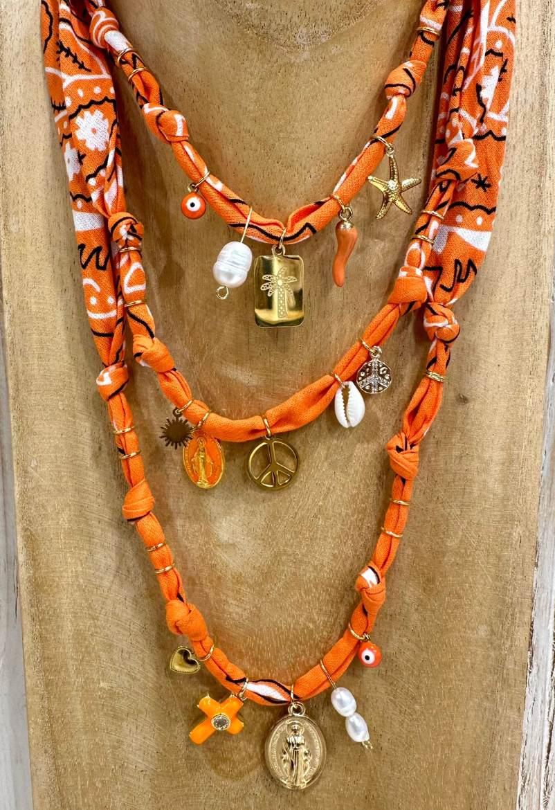 Collana fatta con bandana e charms misti, mix e match per i vostri look :)