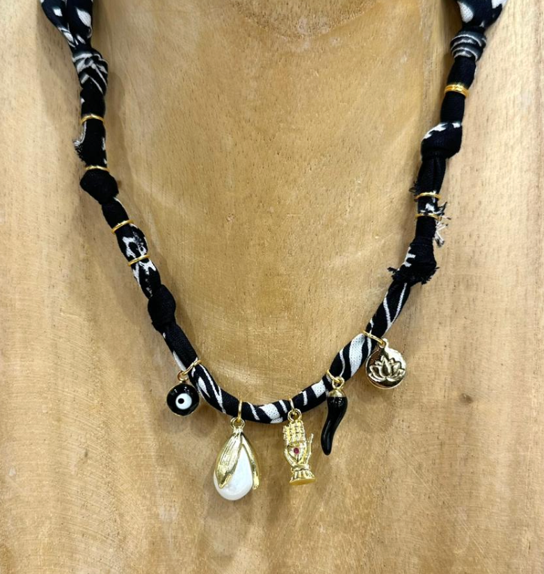 Collana fatta con bandana e charms misti, mix e match per i vostri look :)