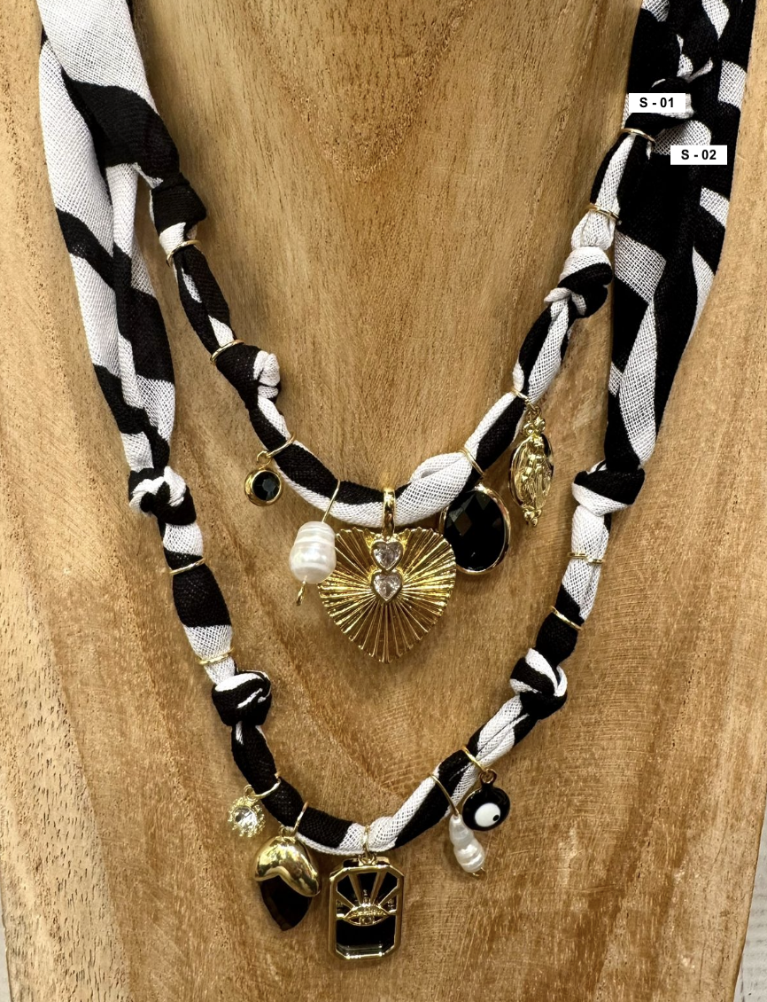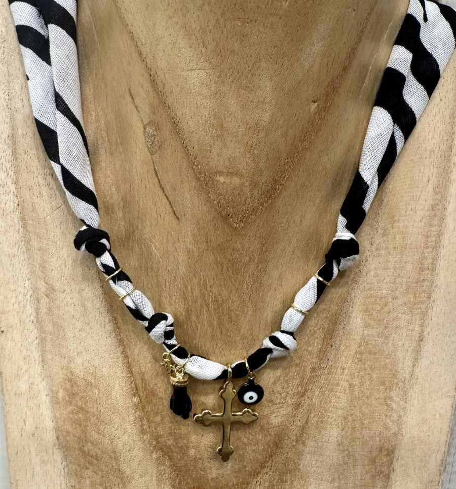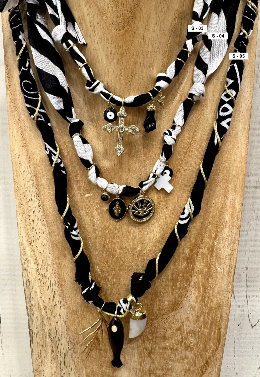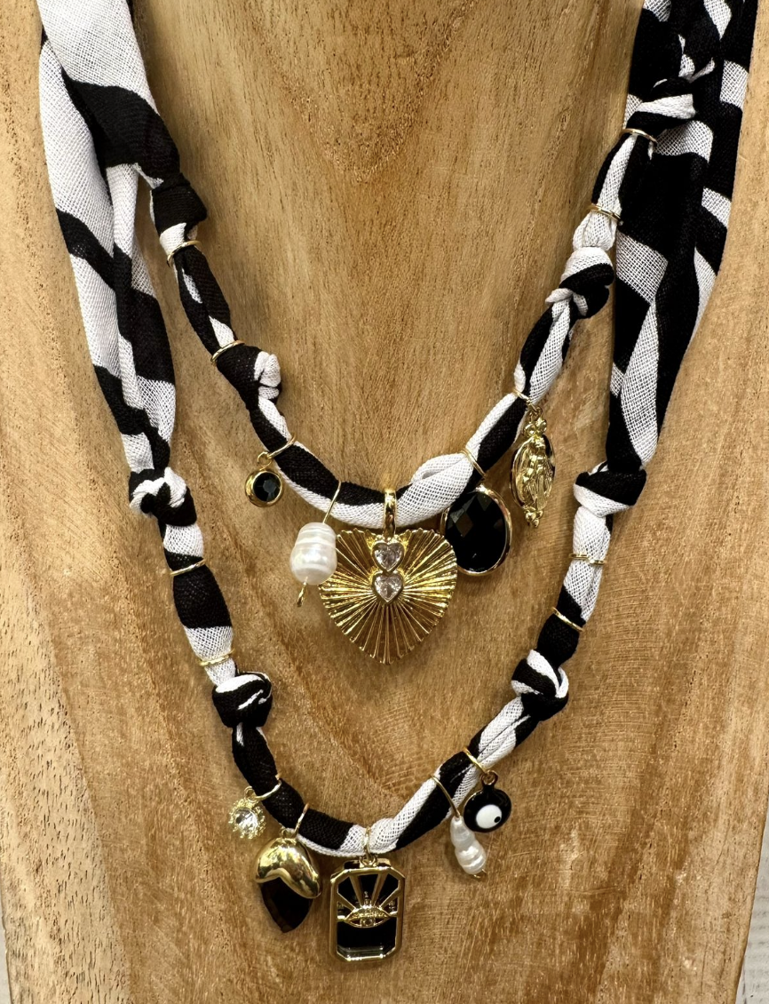 Collana fatta con bandana e charms misti, mix e match per i vostri look :)