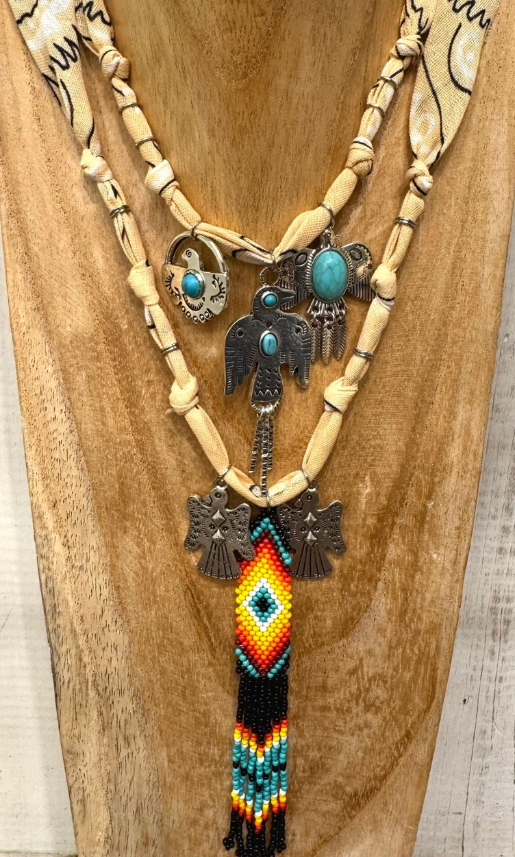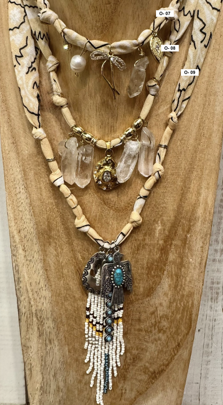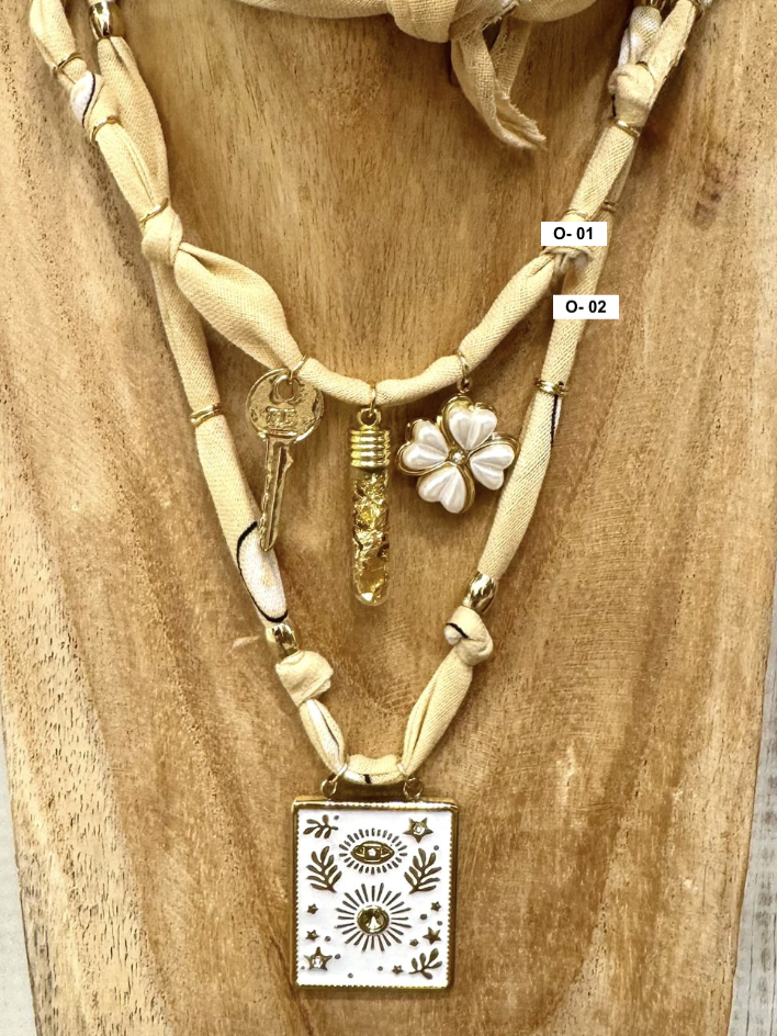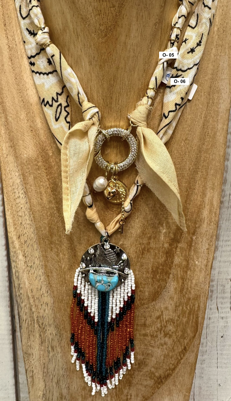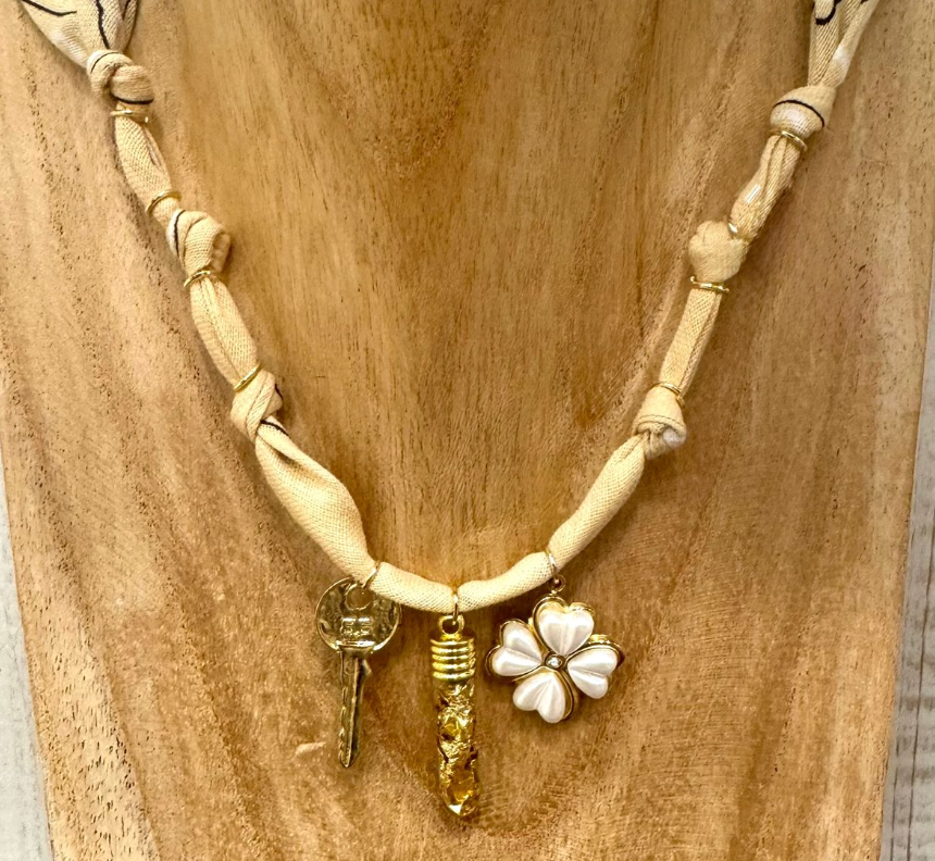 Collana fatta con bandana e charms misti, mix e match per i vostri look :)