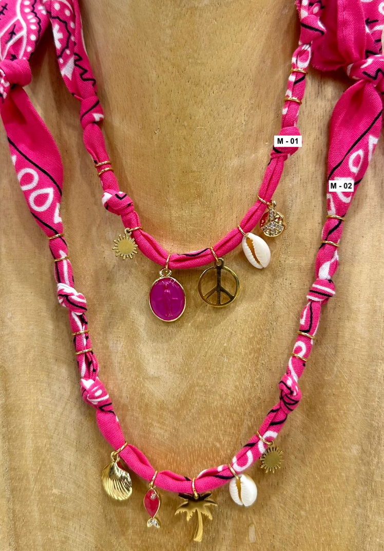 Collana fatta con bandana e charms misti, mix e match per i vostri look :)